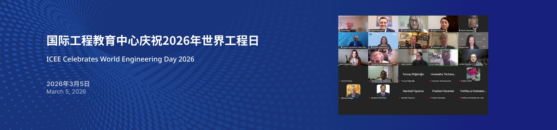 To mark World Engineering Day 2026, an online international symposium was jointly organized by UNESCO, the International Federation of Engineering Education Societies (IFEES), th...【Details】
